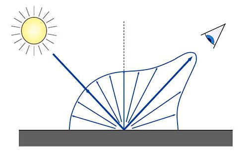 表面が粗い場合、光は鏡面反射の方向だけでなく、他の方向にも拡散反射されます。